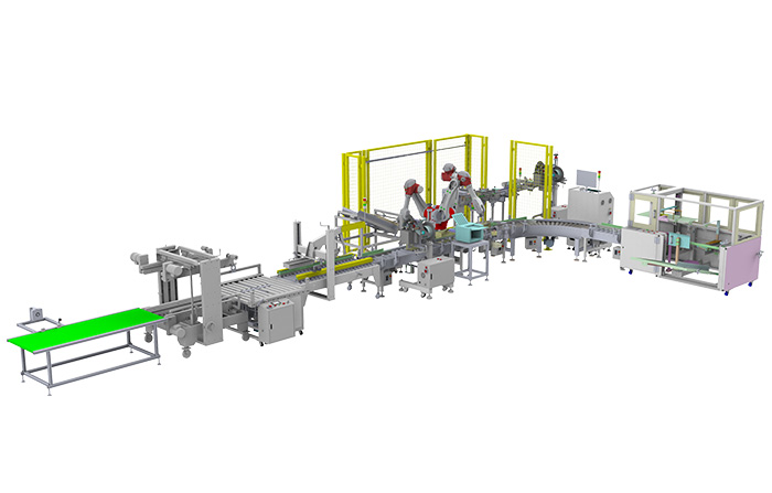 饮料行业:在饮料行业中,无人化包装流水线可以实现对瓶装水、碳酸饮料、果汁等产品的自动包装、装箱、打包。