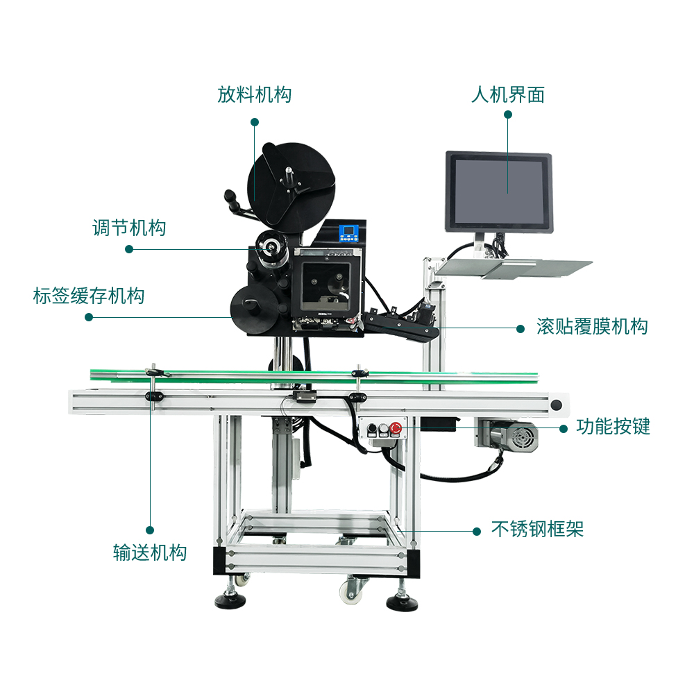 适用于在各种物品的上平面贴标签或不干胶膜,如书本、文件夹、盒子、纸箱等,更换覆标机构可适用于不平整表面贴标,广泛应用于大件产品的平面贴标,规格范围大的平面类物体贴标。